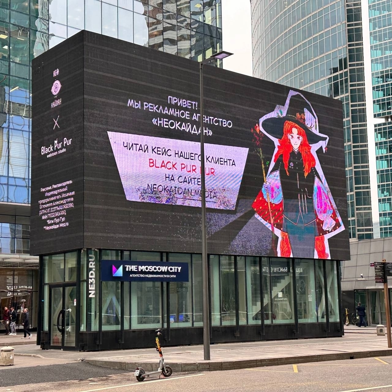 Наш персонаж - ведьмочка, созданная талантливой художницей Мариной Приваловой (автор манги «Тагар», иллюстратор новелл «Магистр дьявольского культа» Мосян Тунсю, «Убить волка» и «Легенда о Фэй» Priest), теперь украшает огромный 3D-билборд в самом центре столицы.